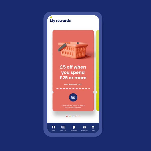In a brief to transform major retailer The Original Factory Shop’s (TOFS) digital proposition, we embarked on an app project. This would be an offer focused app with an integrated loyalty scheme in the form of collecting badges, allowing for in-store purchases to be discounted at checkout.